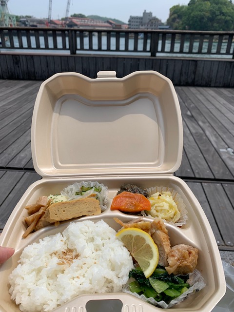 私は、またまた尾道の飲食店のテイクアウトのお弁当で、海を見ながらランチしたよ!