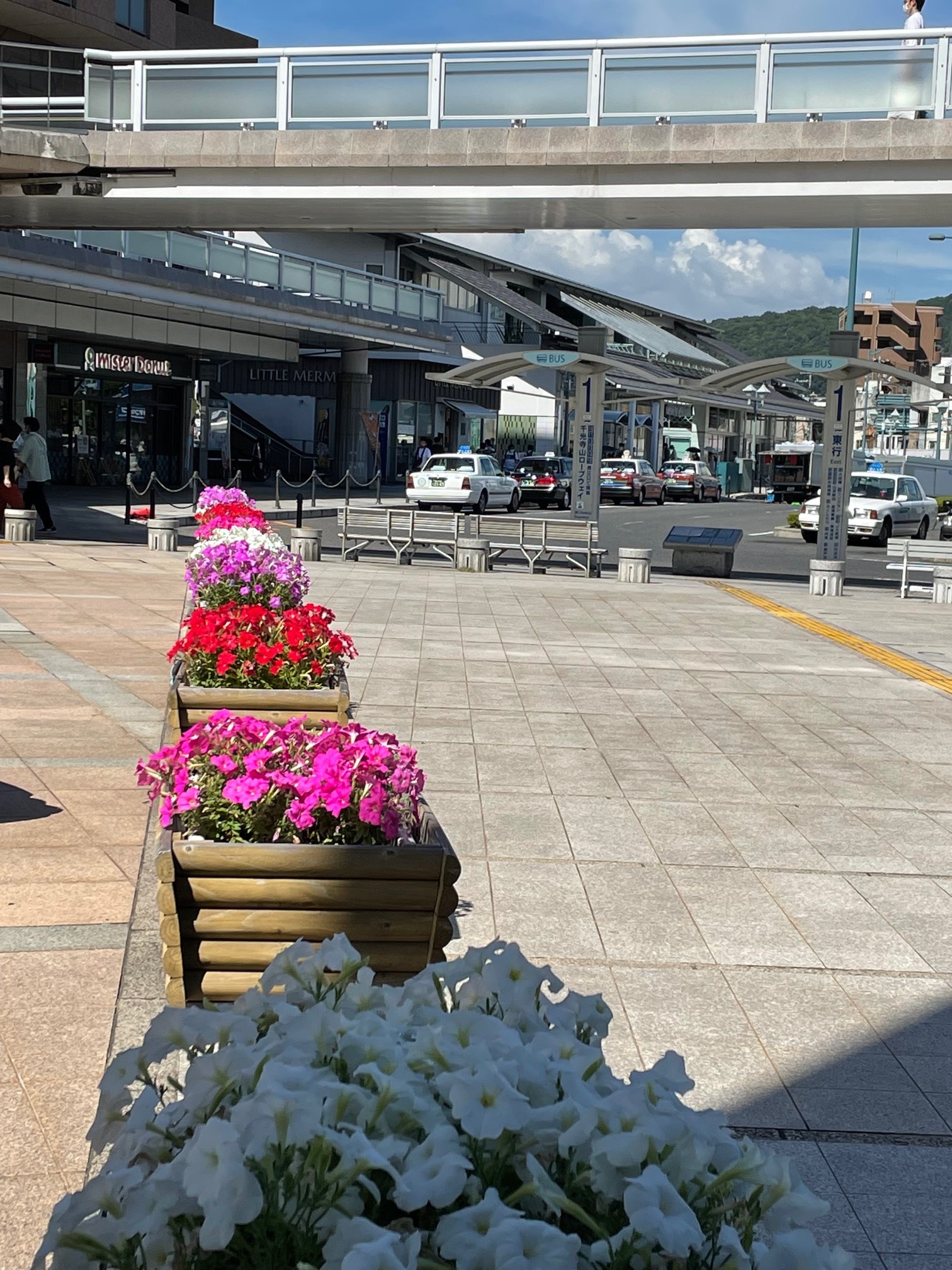 交流館正面玄関前には、暑さの中、綺麗に咲いてる花に見とれちゃいました