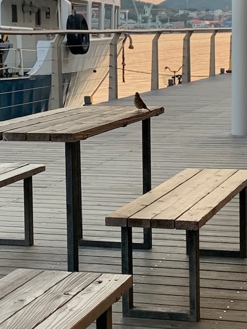 尾道水道を眺めてると、よくスズメが近づいてくるんだよね(^o^)私の知り合い??