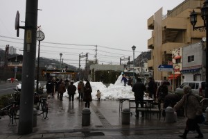「おのみち雪まつり」が1月28日午後1時から4時まで長江口ゆとりの広場で開かれました。尾道市商店街連合会が、日頃イベントに協力してくれる近隣の幼稚園、保育園児たちに感謝の気持ちを込め企画したもので、県北・庄原市の協力で大量の新雪がゆとりの広場に運び込まれました。積雪の無い尾道で思う存分雪遊びが楽しめるイベントに、子どもたちは歓声をあげなが楽しんでいました。