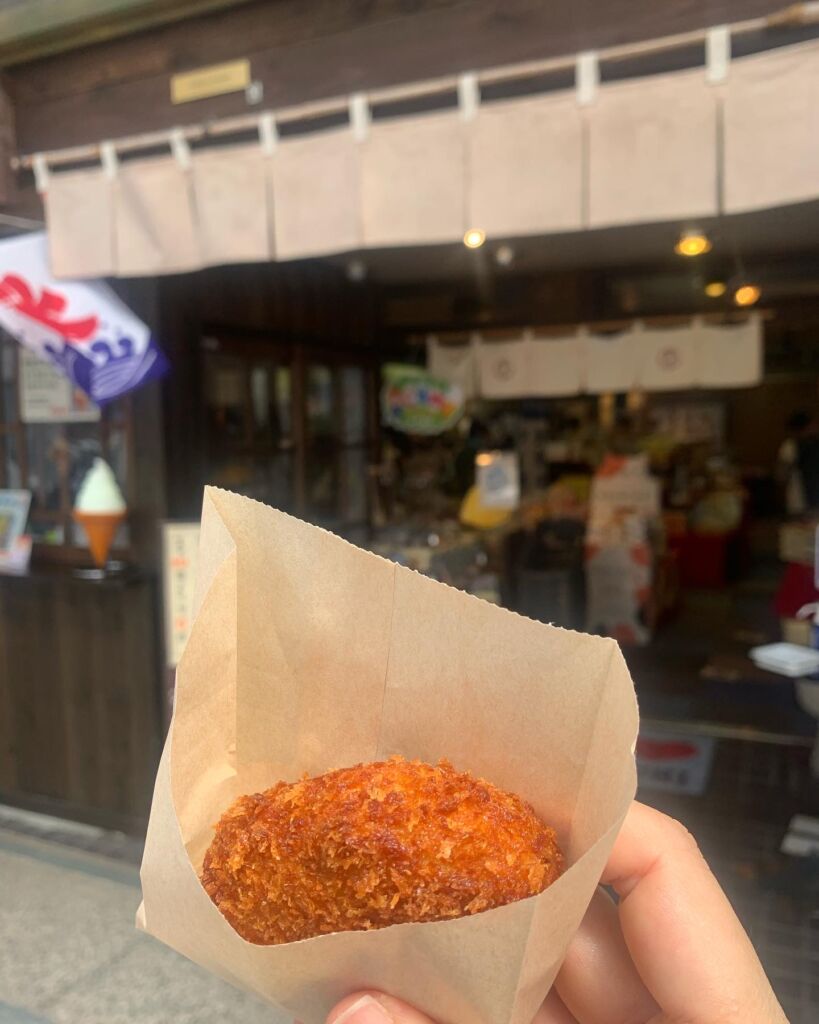 揚げたてコロッケを買ったよ😋尾道ではお馴染みの精肉店のコロッケです