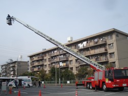 写真(上から):市民で賑わう会場内、内視鏡手術の体験、はしご車の試乗