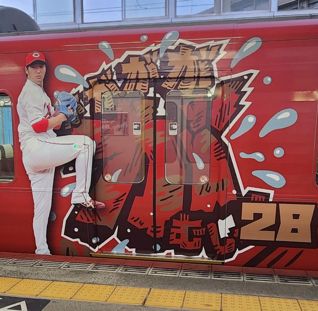 帰りに今年初、カープ応援ラッピングトレイン 2023に乗車。