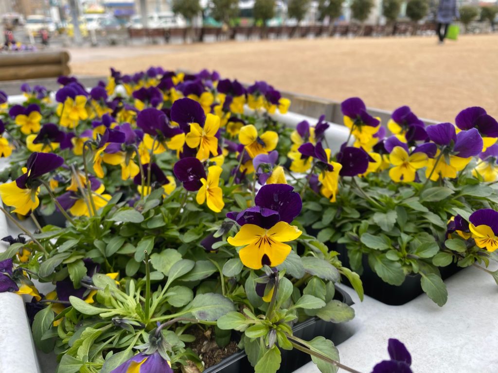 しまなみ交流館の前にある花壇のお花が新しくなりましたね~。