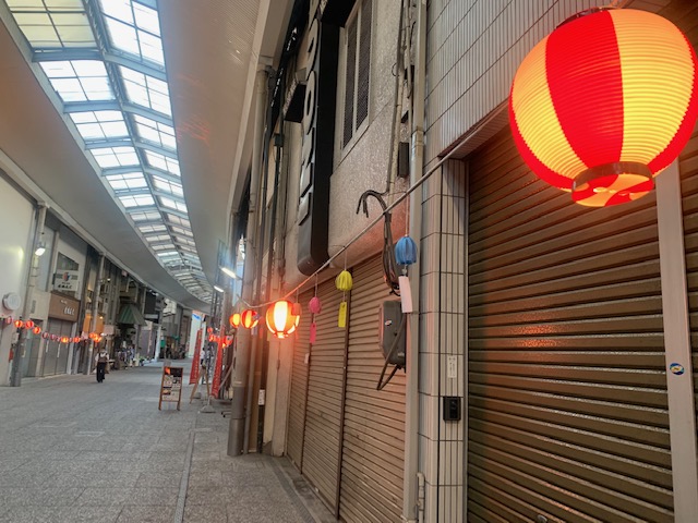 この前、絵のまち通りの一角に提灯と風鈴が飾られてるよ、ってブログに書いたんだけど、提灯の明かりが灯ってるところを写真に撮ってきたよ♪