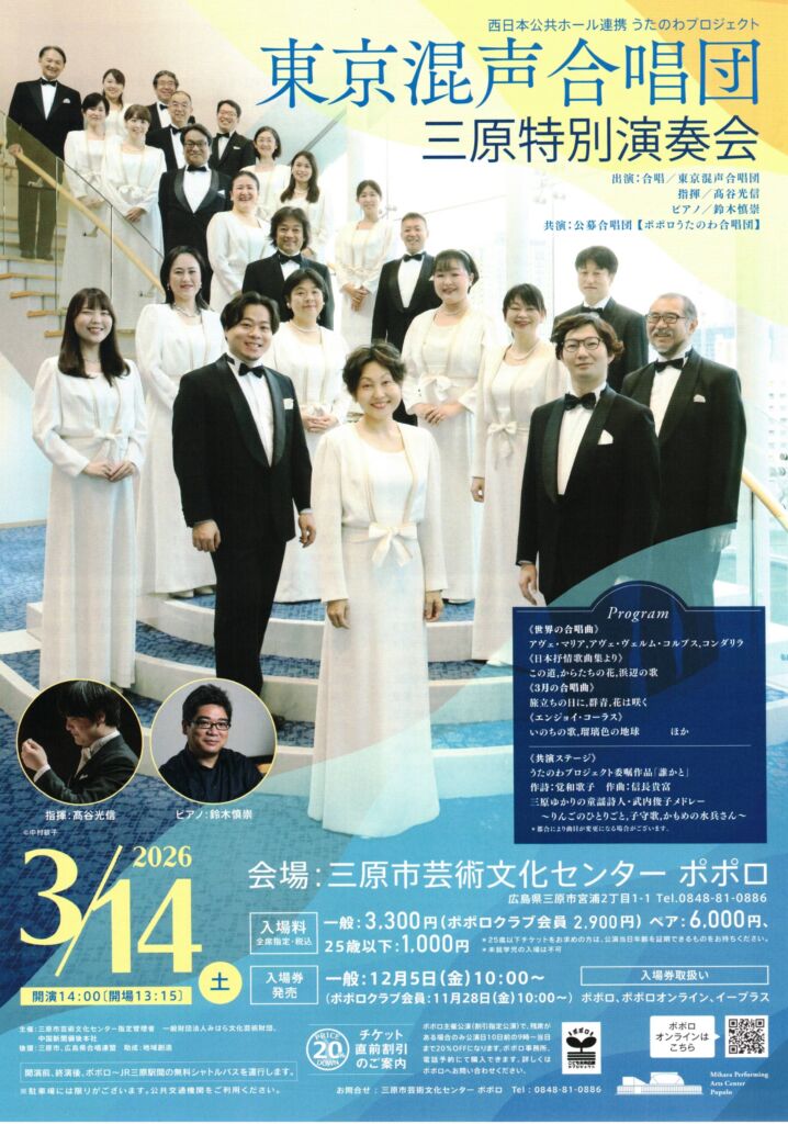 「東京混声合唱団 三原特別演奏会」のペア招待券を2名様にプレゼント。