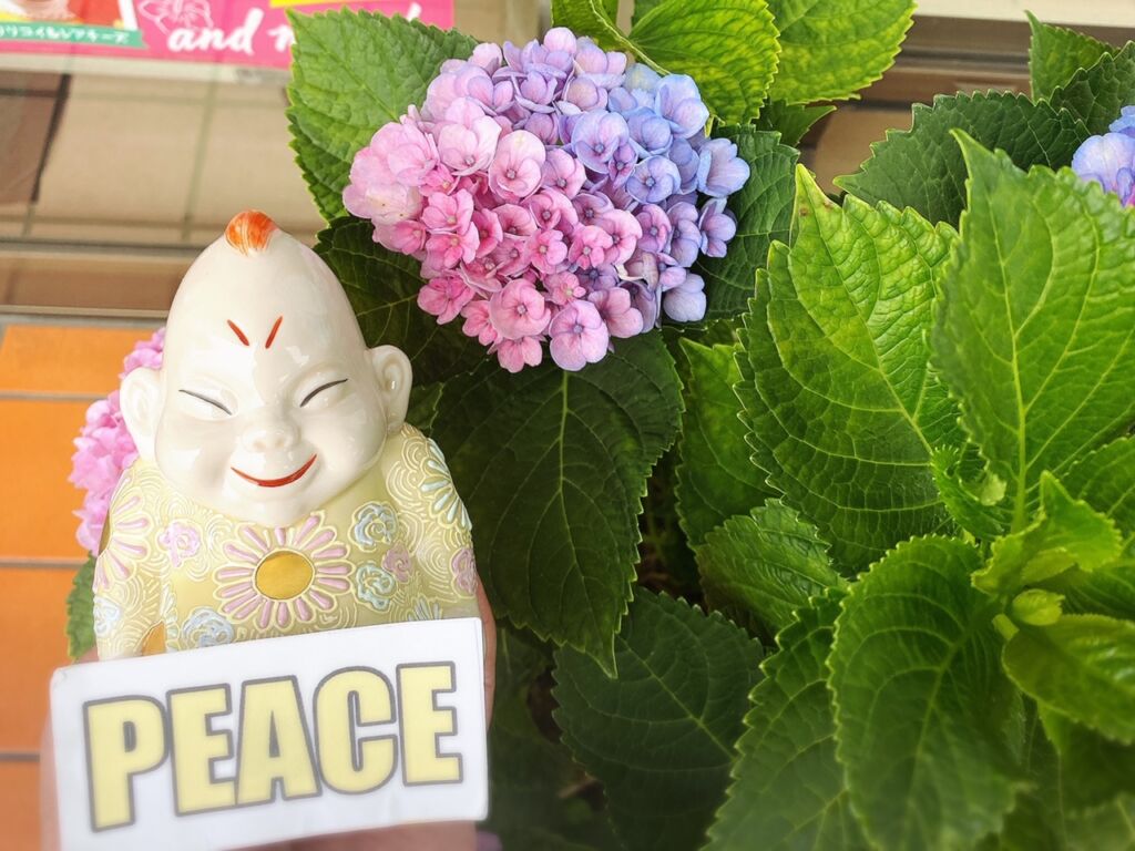 とあるコンビニの入り口にあったアジサイの鉢植え。