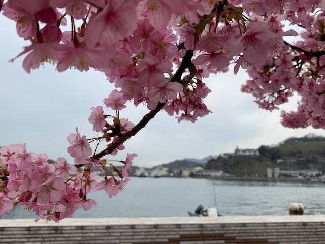 昨日、商工会議所横の海沿いの河津桜を見に行ったよ♪沢山の人がカメラを向けていましたよ(^o^)