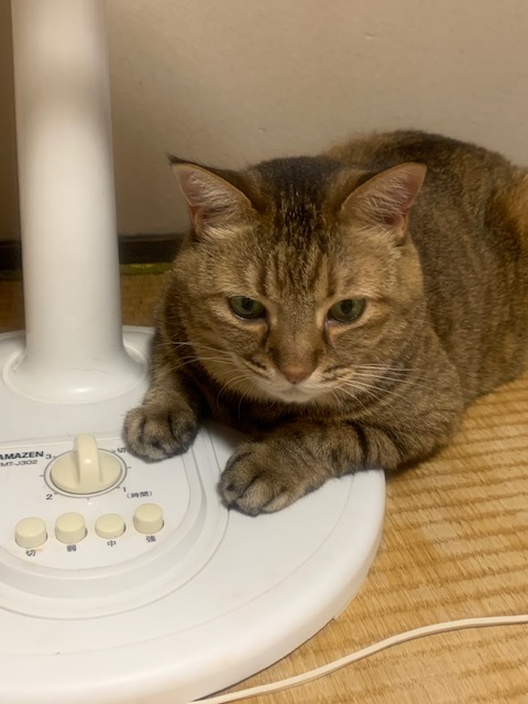 うちの扇風機を管理する わが家の愛猫みるくちゃん