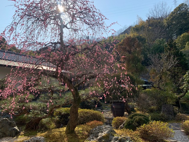 レストランから見えるお庭のしだれ梅が満開になっていたよ!!