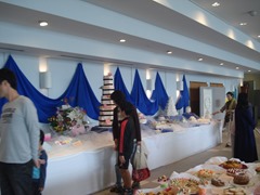 第26回グルメ海の印象派おのみちのイベント「おのみち菓子まつり」がしまなみ交流館1階と芝生広場で19日と20日の2日間開かれ、20日はお菓子作り体験が行われました。芝生広場のテントブースでは、子どもたちが、地元菓子店の職人から手ほどきを受け、どら焼きとふなやき作りを体験しました。また、地元菓子店が試食などを用意しお菓子の販売を行いました。交流館の1階では工芸菓子の展示と、洋菓子教室フランボワーズによる作品展が行われました。「ティーパーティー」をテーマにイギリスや、北欧、フランス、アメリカなど世界各地のティーパーティーで出されるお菓子やイメージしたお菓子を展示。シュガーデコレーションケーキなどの大型作品も展示され注目を集めていました。