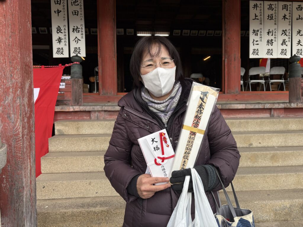 副賞5万円が贈られる大福を見事引き当てたのは、市内在住の山本貴子さん(61)で「家族みんな元気に一年過ごせたら」と喜びを語っていました。