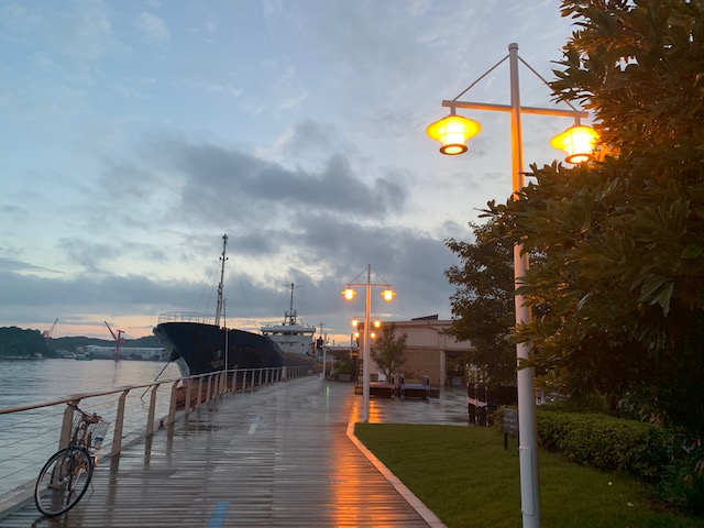 そして・・・雨上がりの夕方、尾道駅前のボードウォークを散歩してたら