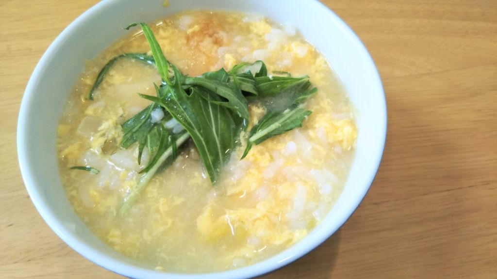 焼いてお醤油を染み込ませたお餅を沈めた雑炊