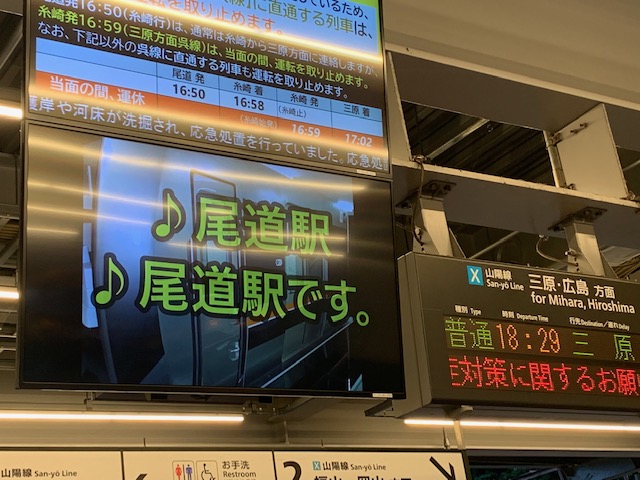 尾道高校の生徒のアイデアを生かした電車マナーの動画が、尾道駅で流れてるよ!
