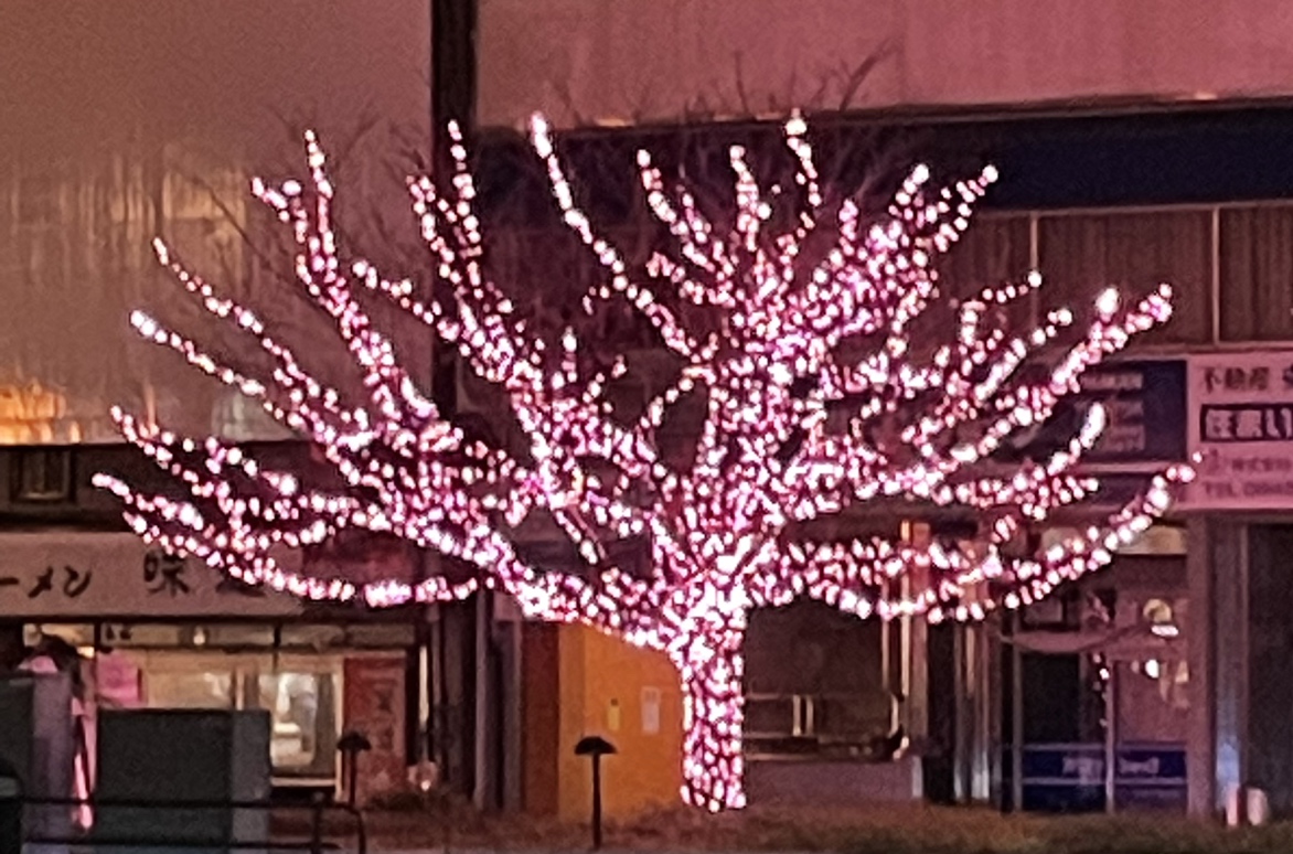 綺麗な駅前の一本桜のイルミネーションをお楽しみください。