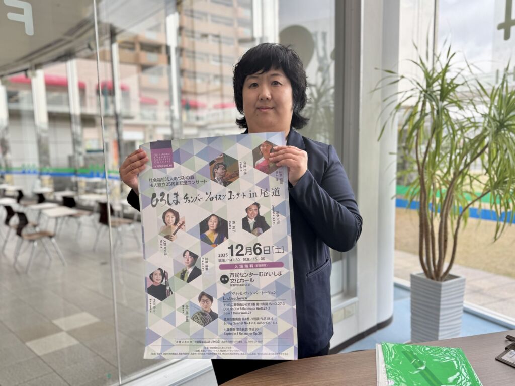 あづみの森 設立25周年を記念して、12月6日(土)市民センターむかいしまで開催の「ひろしまチェンバーソロイスツコンサートin尾道」について、あづみの森 森野永梨さんにご紹介いただきました。