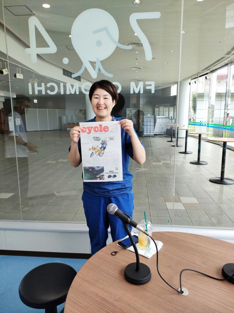 柿原裕子です。 昨日に引き続き、今日も自転車の話題🚲 大阪から尾道へ親子で移住✨✨ フリーペーパー cycle編集長の杉谷紗香さんがスタジオに来てくださったよ。 2回目のご出演。 最新号58のcycleでは、 9歳の息子くんと2人の尾道駅出発の夏旅が紹介されてるよ♪ 後、向島の木曽サイクルさんの、 自転車こいで作るミックスジュースの話題もしてくださったよ🥤 おもしろ~い✨ 尾道の自転車生活を盛り上げてくれる楽しい杉谷さん❤(ӦvӦ。)