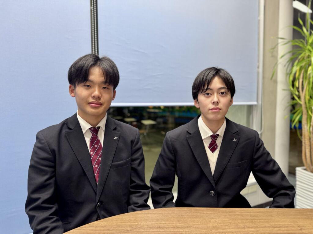 尾道商業高校 3年 小林南さん、田淵龍星さん。