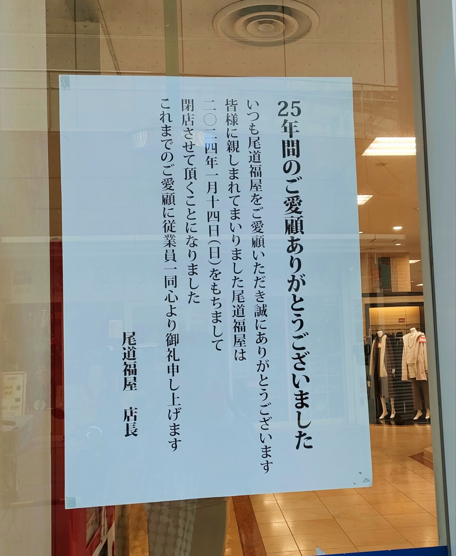 尾道福屋 25年間ありがとうございました。