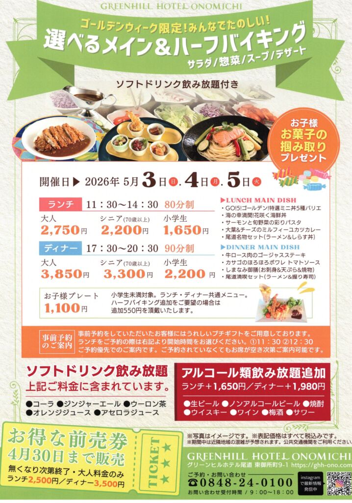 GW限定!選べるメイン&ハーフバイキング グリーンヒルホテル尾道