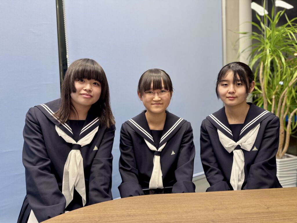 〜市内高校生が学校活動などをレポート〜 尾道東高校 2年 西山桃可さん、浦上真弥さん、森上結菜さん。 DTMクラブ、英語ディベート部全国大会出場について、ご紹介いただきました。